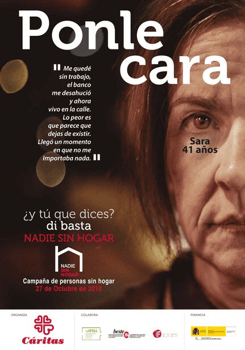 Comienza la Campaña de las Personas Sin Hogar 2019. Este año no solo queremos decir "¡basta ya!" de vulneraciones de derechos, de invisibilidad, de sufrimiento, de vivir en la calle, de inseguridad, de agresiones, de no poder acceder a una vivienda… de no tener hogar. Este año queremos también PONERLE CARA al sinhogarismo. Queremos mirar a esta realidad de frente, sacarla de la invisibilidad y recordar que estamos hablando de personas concretas, con nombres, apellidos y rostro.