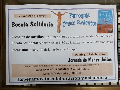 a partir de las 5:30h de la tarde: bocata solidario en los locales parroquiales.