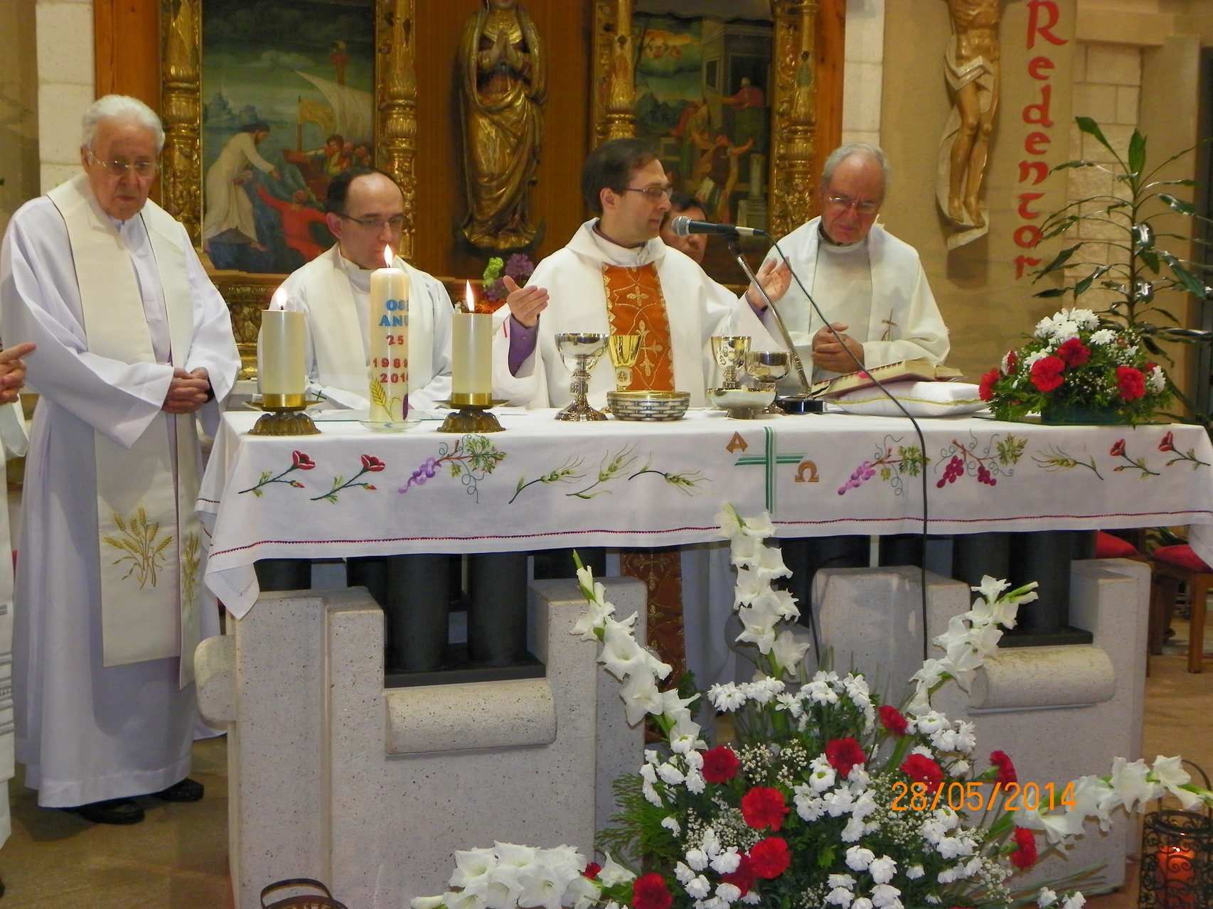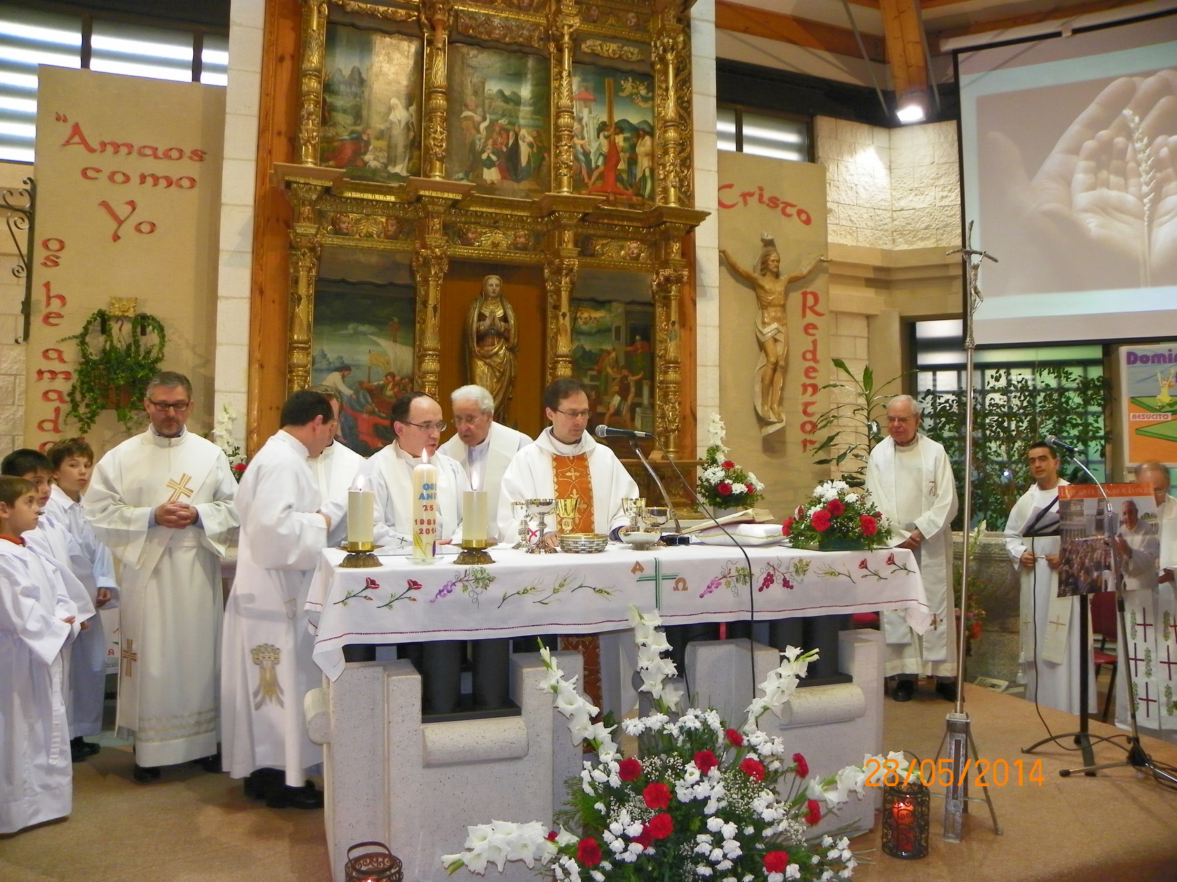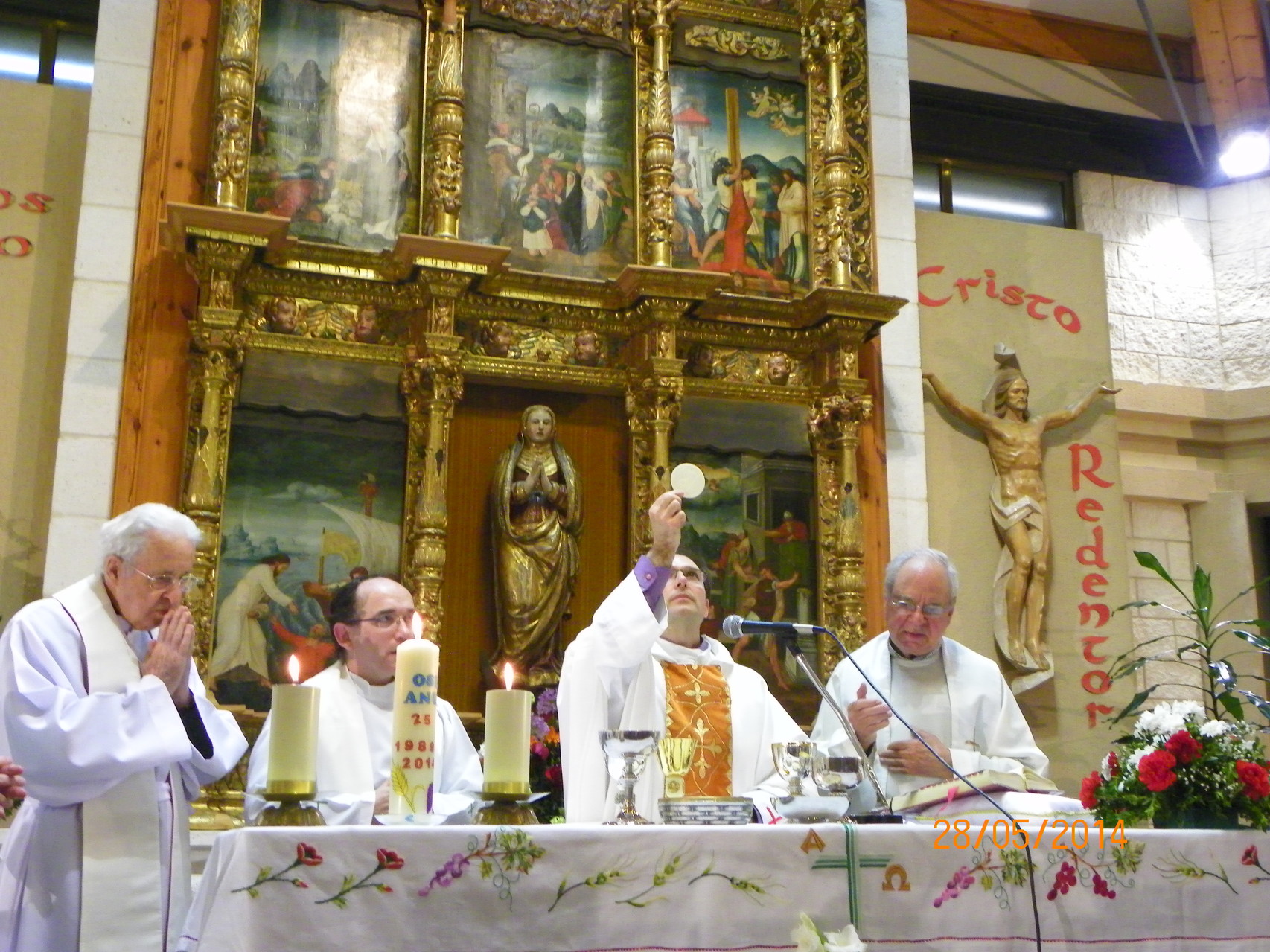 El pasado 28 de Mayo de 2014, toda la Comunidad Parroquial compartió con José Manuel su alegría. Lo vivimos con una celebración de acción de gracias muy emotiva preparada por todos los grupos de la Comunidad y un posterior aperitivo para todos. Fue un día muy especial para toda la Comunidad Parroquial de Cristo Redentor como se puede apreciar en las siguientes fotos.