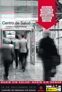Un año más, Cáritas Española, con la colaboración de otras entidades, impulsa la Campaña NADIE SIN HOGAR que este año se celebrará el 24 de Noviembre de 2013 con el lema “NADIE SIN SALUD. NADIE SIN HOGAR”. Se entiende que la Salud, según el preámbulo de constitución de la Organización Mundial de la Salud (OMS), es "un estado completo de bienestar físico, mental y social y no solamente la ausencia de dolencia o enfermedad". La protección de la salud abarca al individuo y a sus circunstancias de manera global. Cáritas defiende que la equidad obliga al Estado a garantizar la universalidad, gratuidad y el acceso de este derecho, a todos los ciudadanos y ciudadanas, especialmente, a los más desfavorecidos.